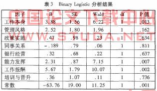 根据回归分析中的wald值,可以将这8个影响因素按其重要程度排列为:工作报酬;能力发挥;工作本身;主管管理风格;政策实施;银行经营;培训与晋升;同事关系。