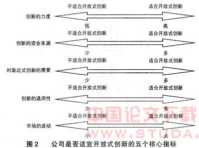 作者认为,除了行业特点和商业环境外,公司内部的组织结构在公司选择创新模式的过程中,也起到重大的作用,这里的组织结构包括组织分权程度,组织文化等。更开放的组织文化和更高的分权程度都会增加公司对开放式创新模式的适应性。