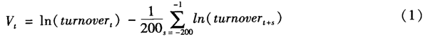 本文借鉴llorente等(2002)的方法,以经长期时间趋势调整之后的股票换手率来衡量成交量vt,计算公式为式(1):