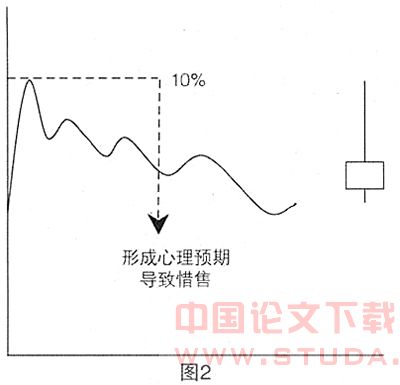 从心理活动上来分析这个下跌,首先,既然是有计划、有组织的行动,如果资金大户的目的是要将股票价格抬升到更高的位置,那么这个涨停肯定能够封住,至少不会逐波下跌。其次,由于开盘时参与的投资者相对较少,更容易将股票拉至涨停位置,同时给未参与买卖的该股票持有者一个心理预期,即强行地将涨停价作为卖出参考价格深深地烙在这些投资者心中,造成惜售。设身处地想想,如图2,如果没能在涨停位置卖出股票,那么在其它位置卖出会是满意的结果吗?所以绝大多数的投资者都会采取持股观望的态度,而股价一直在下跌,那么是谁在不停地卖出股票呢?结论已经非常清楚了。这也是前几年很多投资者10元买进0568泸州老窖,而该股票最高涨至26.8元,但最终还亏损的原因。所以,人们在操作决策中因贪婪和恐惧导致的过盛的投机心理才是证券市场“历史会重演”的根本原因。