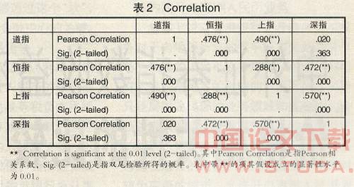 通过上述分析可以看出我国大陆股市与美国、香港等成熟股市之间的联系以及互动性的程度。如果相关系数为正,则说明我国股市会随着这些成熟股市的波动而做同向的波动,如果相关系数为负则说明我国股市会与这些成熟股市做逆向波动。如果相关系数很小或不具有统计意义就说明我国股市的波动性基本不受上述成熟股市波动性的影响。在这个研究中,我们将利用一些应用软件来分析相关的数据,这里主要利用spass12.0软件中的二元变量相关性分析(bivariatecorrelation)计算pearson相关系数(pearsoncorrelation),可得表2。