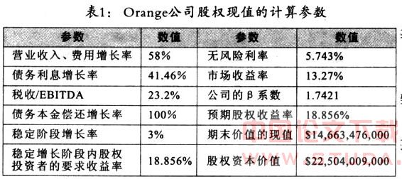 m=13.27%。同时假设在稳定增长阶段内股权投资者要求的收益率等于orange公司的预期股权收益率,即r=r=18.856%。