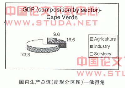 图1显示了佛得角和中国两国的国内生产总值的分区组成。尽管佛得角的服务业所占你的分区比中国的大,但是这并不意味着佛得角佛得角会处于与优势,因为数量上的优势绝对不会代表质量和科技的优势。这可以说明佛得角的第三产业很有发展潜力发展和应该特别地关注第三产业中的一个领域或是更多的领域,例如无线电长途通讯业,同中国进行贸易。中国的工业国内生产总值远远比佛得角大,佛得角应该在这一领域同中国贸易么?