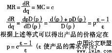 在差异化情况下,企业的定价不等于完全竞争条件下的定价。在完全竞争条件下,企业的定价 p等于企业的边际成本c。 而在差异化情况下,企业则是边际收入 mr等于边际成本c定价。假设差异化条件下企业面临的需求为: